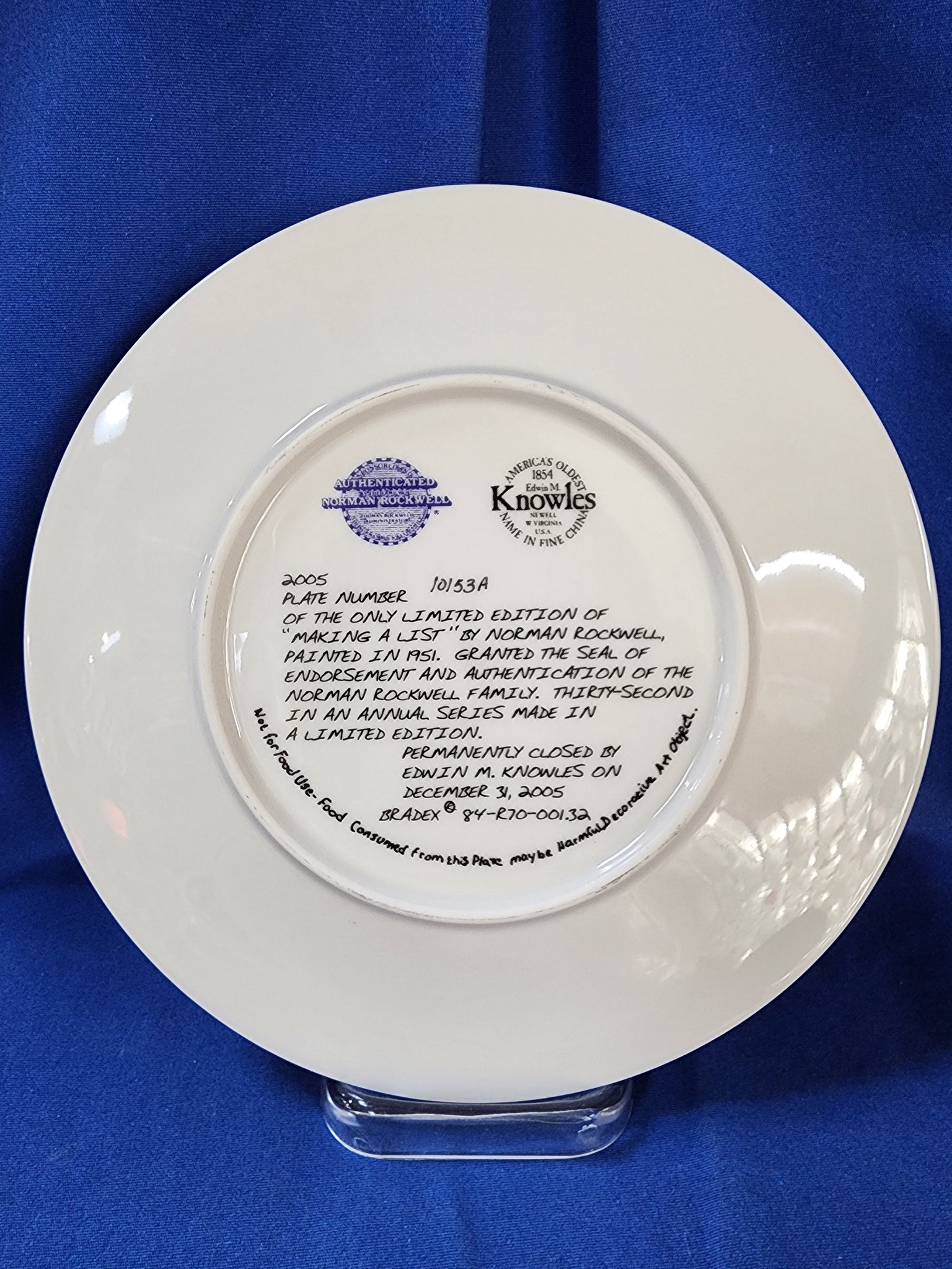 Norman Rockwell "Christmas (Rockwell Society) 2005 - Making A List, Plate"